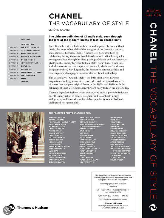 Gabrielle ‘Coco’ Chanel was zonder twijfel de meest invloedrijke ontwerper van de 20e eeuw. Dit boek eert haar invloed door de belangrijkste elementen te vieren die haar stijl bepaalden en nog steeds definiëren, door middel van geïnspireerde combinaties van klassieke en hedendaagse foto’s. Door modeplaten uit Chanels eigen tijd te combineren met de meest recente creaties van Karl Lagerfeld, zoals Cecil Beatons portret van Coco Chanel naast een portret van Cate Blanchett van Lagerfeld zelf, wordt de resonantie tussen archief- en hedendaagse foto’s scherp, levendig en veelzeggend.