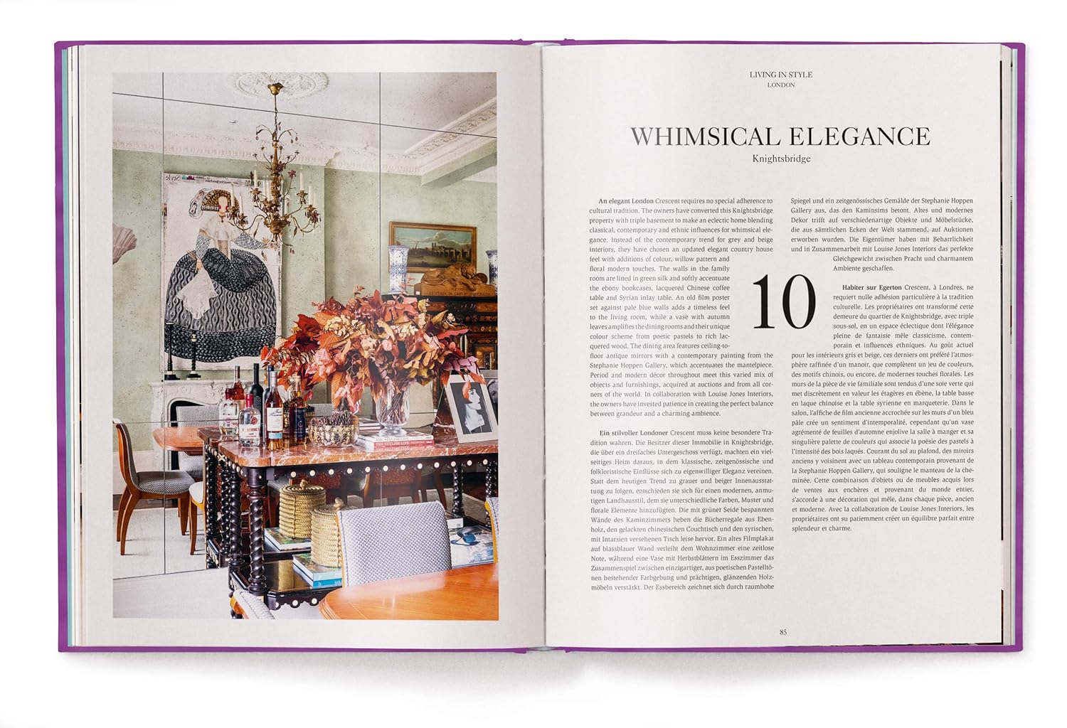 Er is geen andere Europese hoofdstad waar uw huis (letterlijk) zo kostbaar is als in Londen, een plaats waar uw postcode een krachtig visitekaartje kan zijn. Iedereen die ooit door de verschillende buurten van de stad heeft geslenterd, langs de moderne wolkenkrabbers is gegaan en een van de vele Georgische of Victoriaanse gebouwen is binnengegaan, heeft waarschijnlijk een grote nieuwsgierigheid, zo niet afgunst, gevoeld bij het verblijven in dit deftige en historische, maar toch door en door moderne gebouw. Voorbeelden van adembenemend design zijn er in overvloed in Living in Style London, waar lezers zullen zien hoe Londense interieurontwerpers en architecten woningen creëren die perfect zijn afgestemd op de mensen die er wonen, terwijl ze optimaal gebruik maken van de beschikbare ruimte.